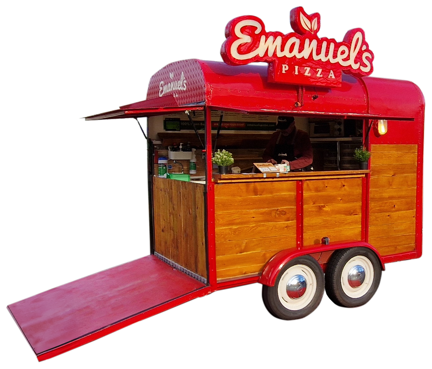 Do you have a private event or party that would love a big red mobile pizza van in attendance? Well, you’re in luck! Emanuel’s mobile pizza van is available for private hire. Please get in touch for further information and a good chat.